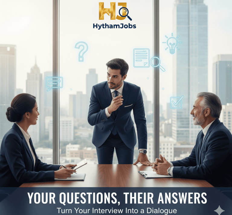 استعد من خلال البحث عن معلومات الشركة والوظيفة. حدد الأسئلة الهامة لطرحها. تدرب على صياغة الأسئلة بشكل احترافي.